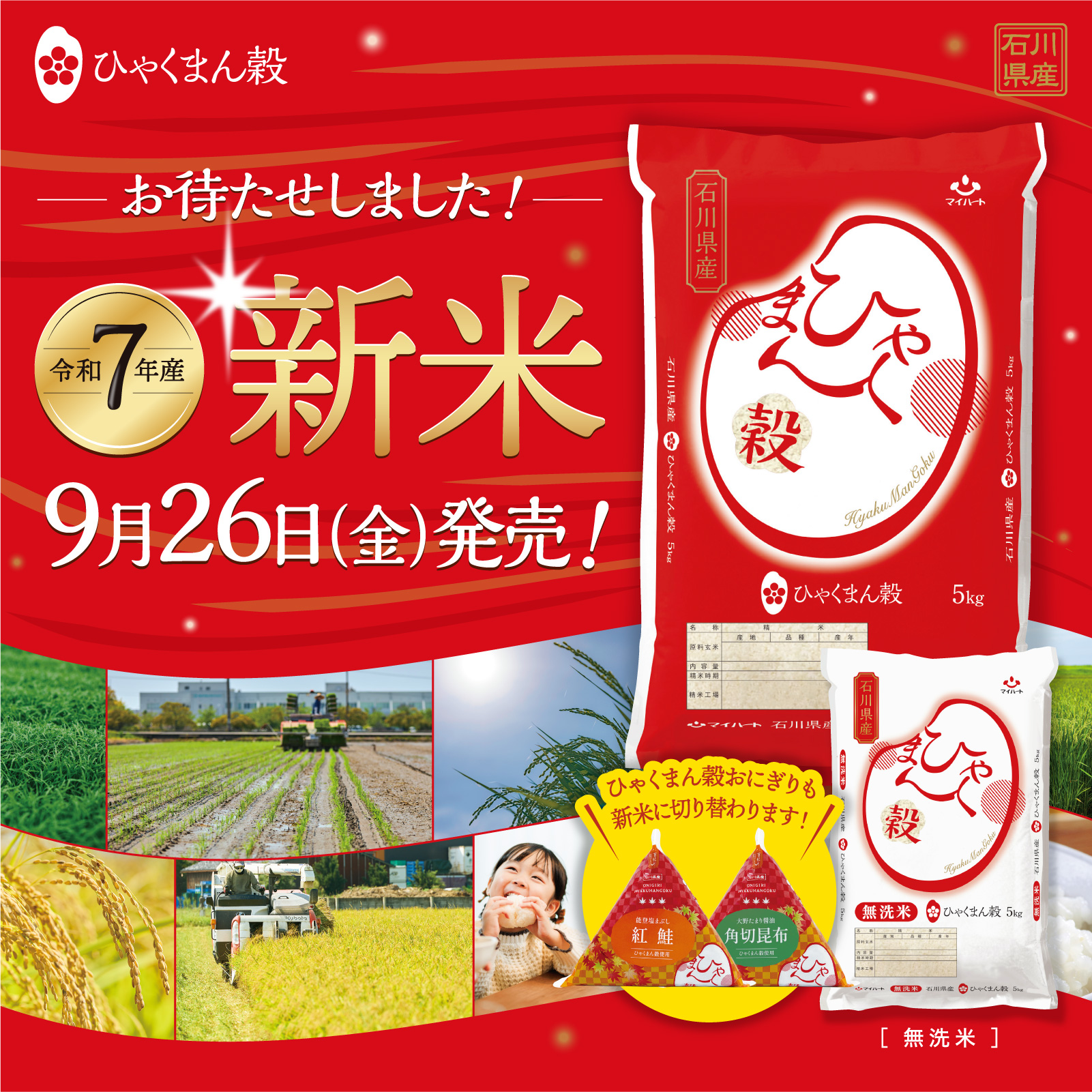 お待たせいたしました!本日より、令和7年産の新米ひゃくまん穀を発売いたします。